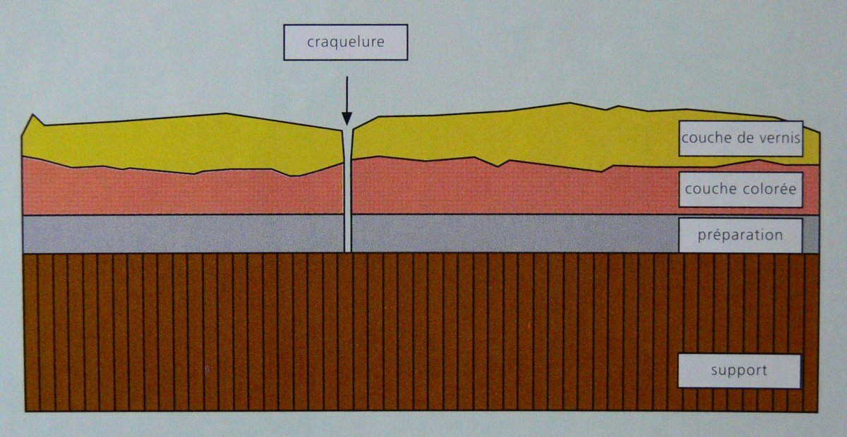 Un tableau est une peinture (à l’œuf, à l’huile ou à l’acrylique par exemple) réalisée sur un support qui peut être du bois ou une toile clouée sur une structure en bois, appelée châssis. Un enduit, communément appelé « préparation », souvent à base de colle animale et de pigments, est ensuite appliqué en une ou plusieurs couches. Celui-ci permet d’isoler le support et de créer une surface plus ou moins lisse afin de recevoir la peinture. Cette dernière est posée ensuite sur la préparation, et sera vernie, dans la plupart des cas. Une œuvre peinte est à la fois un objet composite (les matériaux sont mélangés les uns aux autres) et stratifié (les matériaux sont posés les uns sur les autres). Tous ces matériaux ne réagissent pas et ne vieillissent pas de la même façon, ce qui fragilise l’objet.